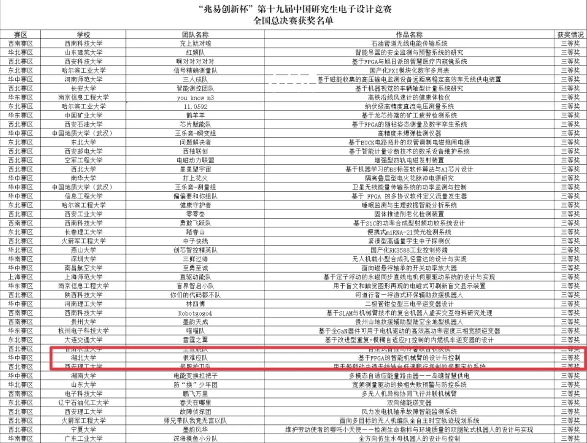 本届研电赛启动以来,党委研究生工作部、研究生院及公司高度重视,积极谋划、周密部署、协同推进赛事各方面的组织备赛工作,积极承办第十九届研电赛华中赛区赛事,不断提升参赛项目的竞争力。师生团队反复打磨参赛作品,奋力拼搏,从全国7000余支队伍中突破重围斩获国奖,再创佳绩,充分展示了参赛研究生不畏困难、昂扬向上的良好风貌。