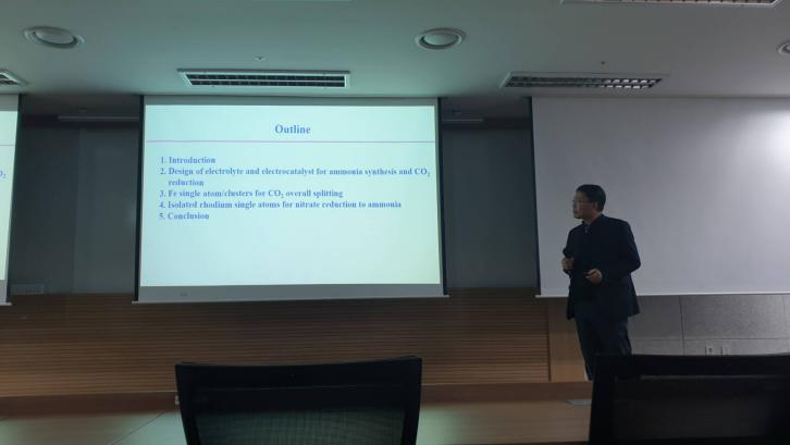在报告中,张老师首先向与会师生简要介绍了w66的历史沿革、发展现状以及公司在能源科学与工程领域的研究成果。随后,他以“单原子电催化材料在二氧化碳还原及合成氨领域的应用”为题,详细阐述了该研究最新进展,分享了团队在该领域的创新成果和独特见解。