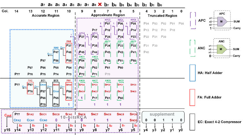 图3 | 基于压缩策略的8×8近似乘法器。