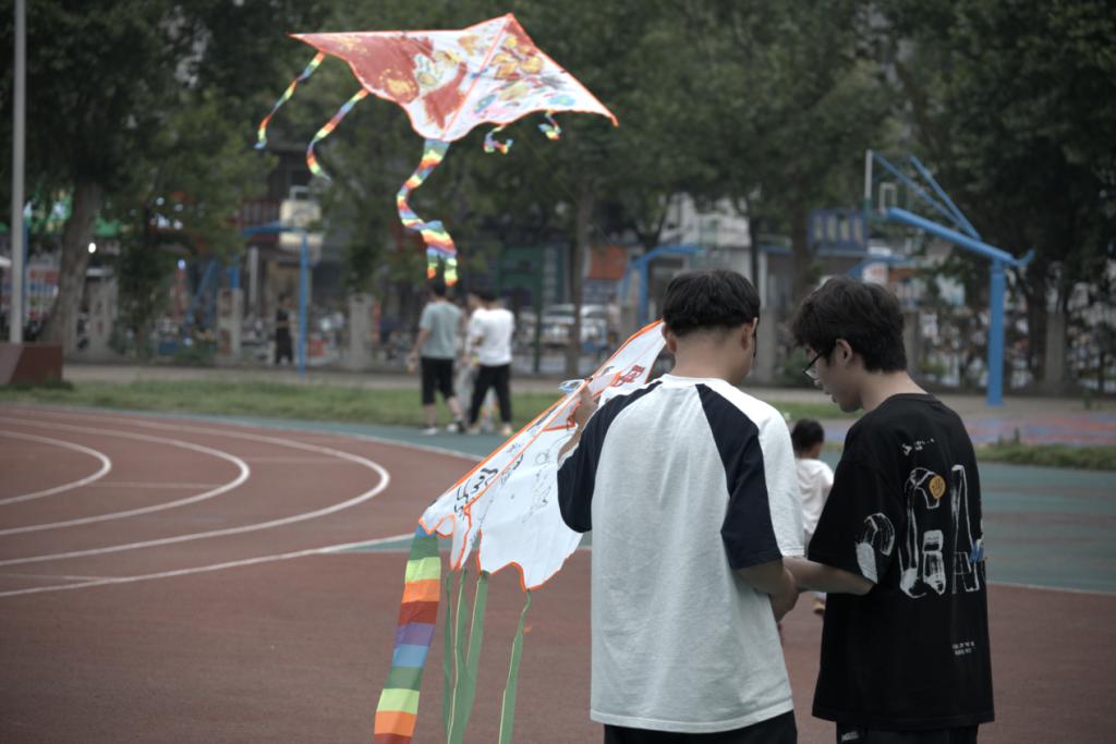 绘制环节结束后,便是最令人期待的放飞时刻。大家手持风筝,迎着春风,奔跑在广场上。风筝在蓝天白云的映衬下,缓缓升起,越飞越高。活动现场热闹非凡,同学们手持自己亲手绘制的风筝,在操场上奔跑欢笑。每一个风筝都承载着同学们的愿望和梦想,它们在空中翩翩起舞。同学们平日忙碌的学习和生活压力在本活动中得以释放。