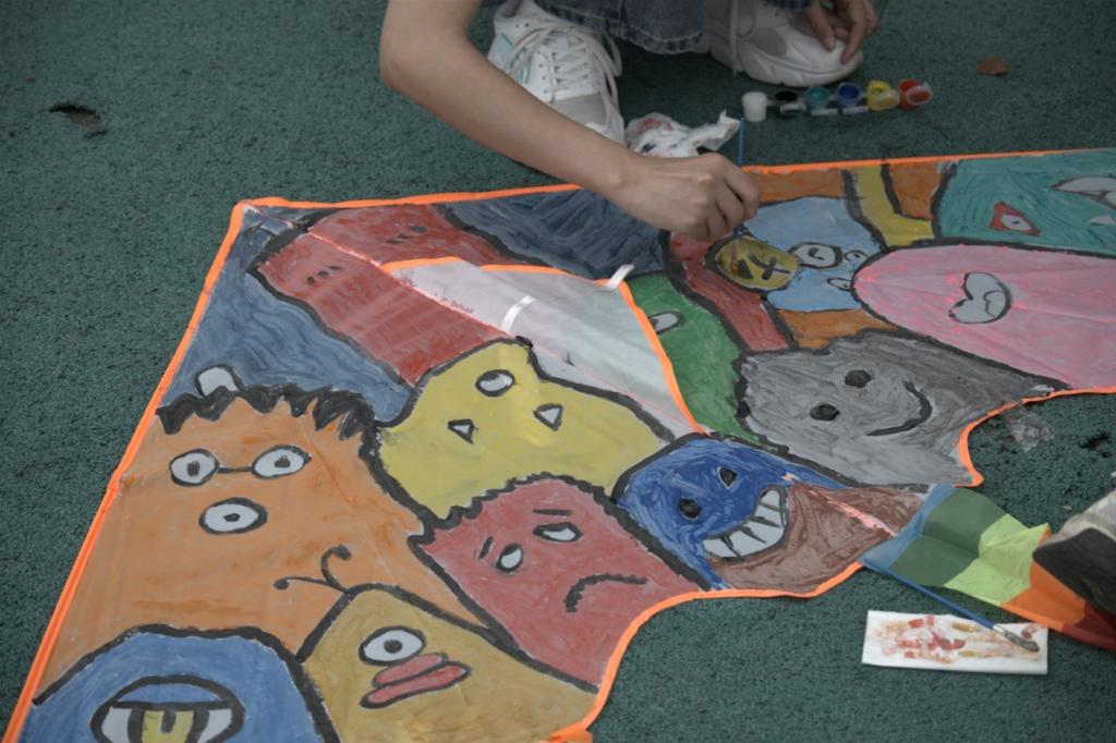 活动当天,微风轻拂、气候凉爽,活动进行得热火朝天。公司精心准备了大量空白风筝和画笔。同学们纷纷组成小组,开始绘制自己的风筝,每个人都沉浸在创作的乐趣中。同学们根据自己的喜好和创意,将自己的最近心情、未来的愿望或故事化作笔下的图案融入风筝的设计中。