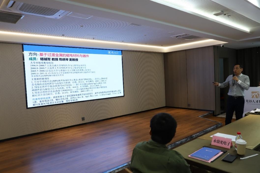 光谷人才集团首先介绍了集团的基本情况,w66旗舰厅代表教师王文峰教授、杨辅军教授、陈勇教授、万厚钊副教授、彭旷副教授等依次汇报了各自的研究方向和科研成果。交流会上,七家微电子企业代表分别介绍了公司的基本方向和技术需求。在会议自由交流环节,企业代表与教师进行了充分和精彩的互动,就项目融资需求、科技成果产业化等问题进行了交流。其中,灿光光电和高德红外代表也表示,校企对接对企业的发展很重要,是企业突破关键核心技术公关的抓手,通过教师在交流会上的汇报,企业能快速准确地了解高校老师的研究方向是否符合企业未来的发展,希望光谷人才集团多组织这种类型的活动。