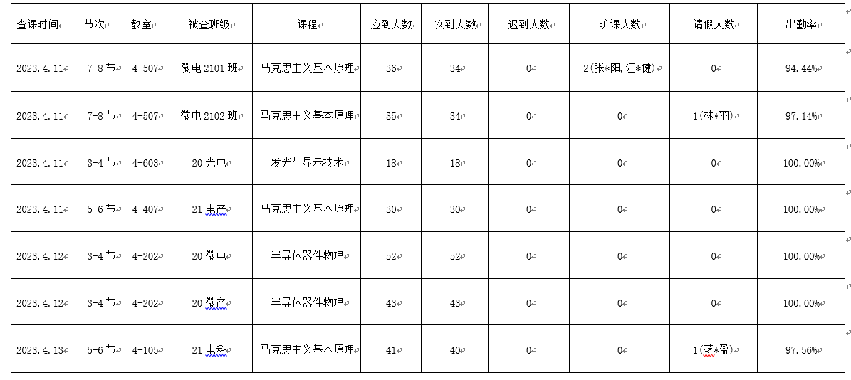 w66旗舰厅第十周查课查寝情况通报