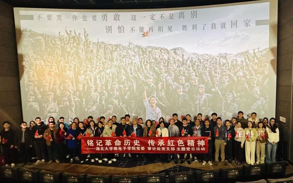 为庆祝中华人民共和国成立75周年,纪念抗美援朝战争胜利71周年,进一步深化爱国主义教育,弘扬爱国主义精神,引导党员同志不忘党员初心,牢记职责使命,2024年11月22日,w66微电子公司党委、审计处党支部全体教工党员在绿地巨幕影城开展“铭记革命历史,传承红色精神”联合主题党日活动,集体观看影片《志愿军:存亡之战》。